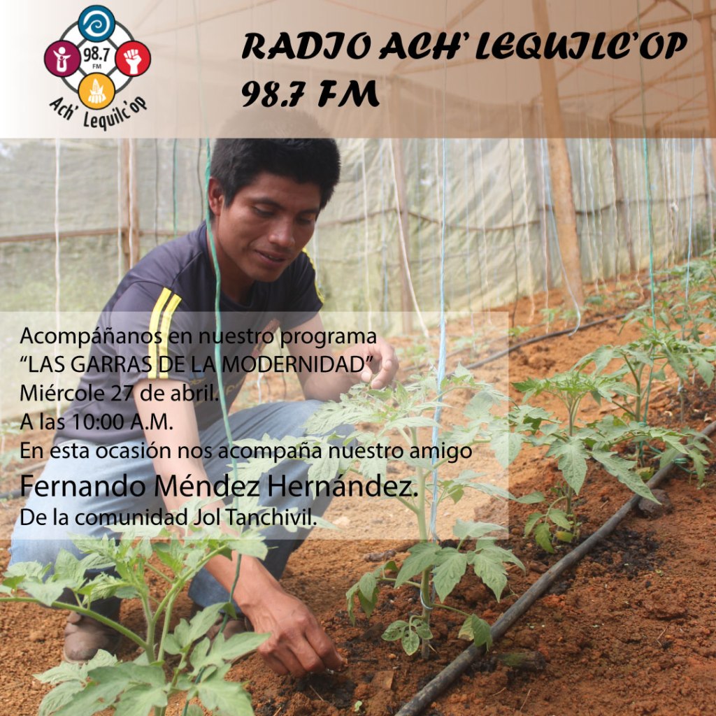 Acompáñanos en nuestro programa LAS GARRAS DE LA MODERNIDAD, donde nuestro amigo Fernando Méndez Hernández de Jol Tanchivil nos cuenta cómo fue el proceso de sus estudios y de regresar a su comunidad para trabajar con su pueblo.