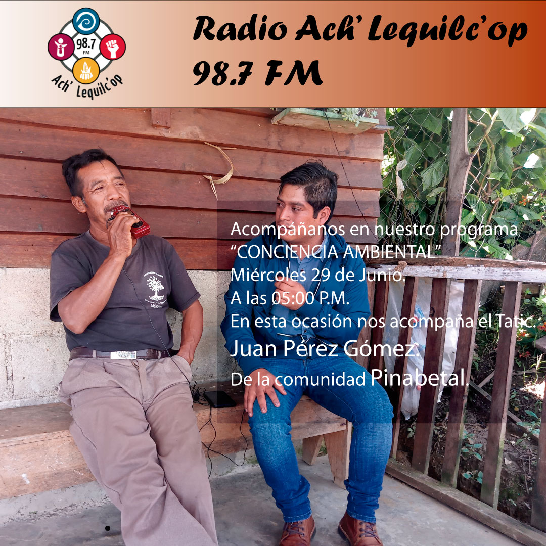 Acompáñanos en nuestro programa «Conciencia Ambiental», donde tendremos la participación del Tatic Juan Pérez Gómez. miércoles a las 05:00 P.M en la radio Ach’ Lequilc’op 98.7 F.M