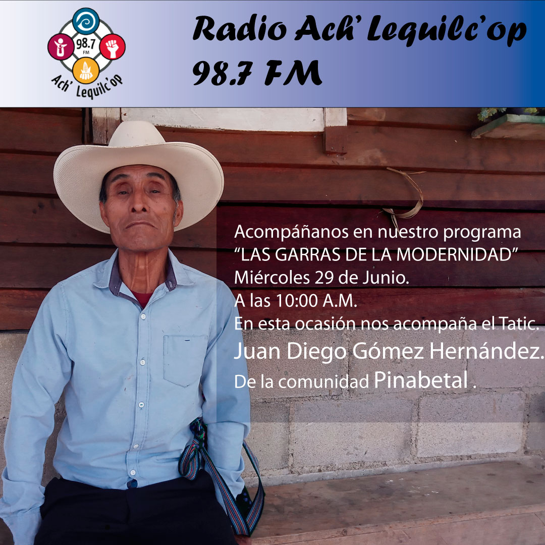 Acompáñanos en nuestro programa «Las Garras de la Modernidad» el día miércoles a las 10 de la mañana, donde tendremos a nuestro invitado, el Tatic Juan Diego de la comunidad de Pinabetal; donde nos cuenta cómo es que la comunidad ha ido creciendo con el paso de los años.