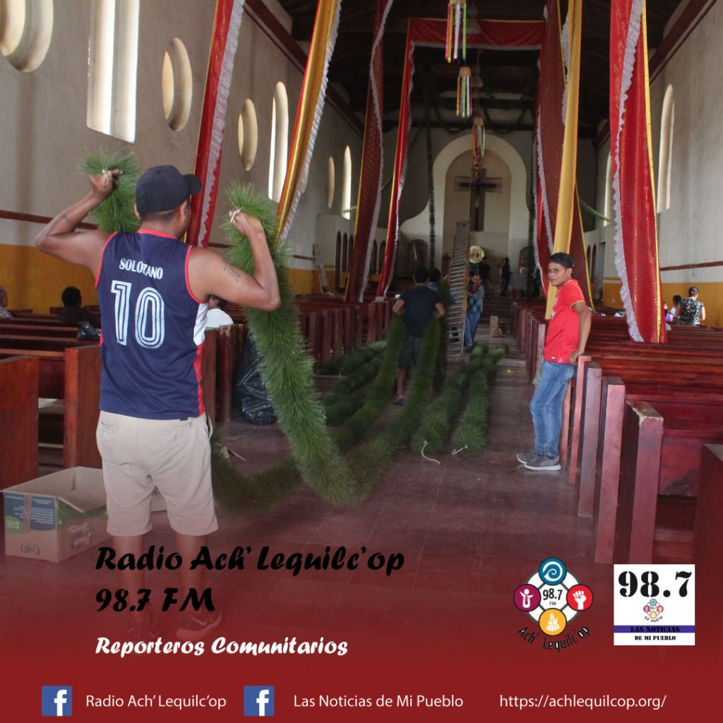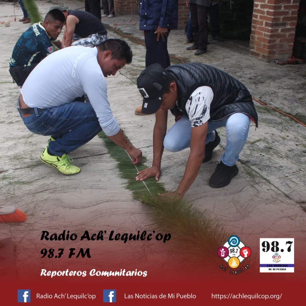 Desde muy temprano, la comunidad se organizó para llevar acabo el adorno en la iglesia católica y en la calle central.