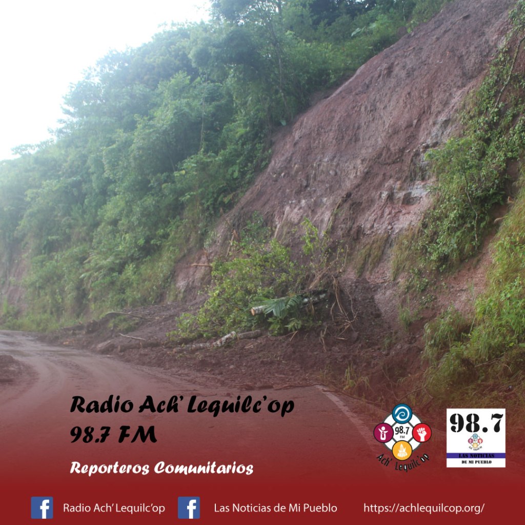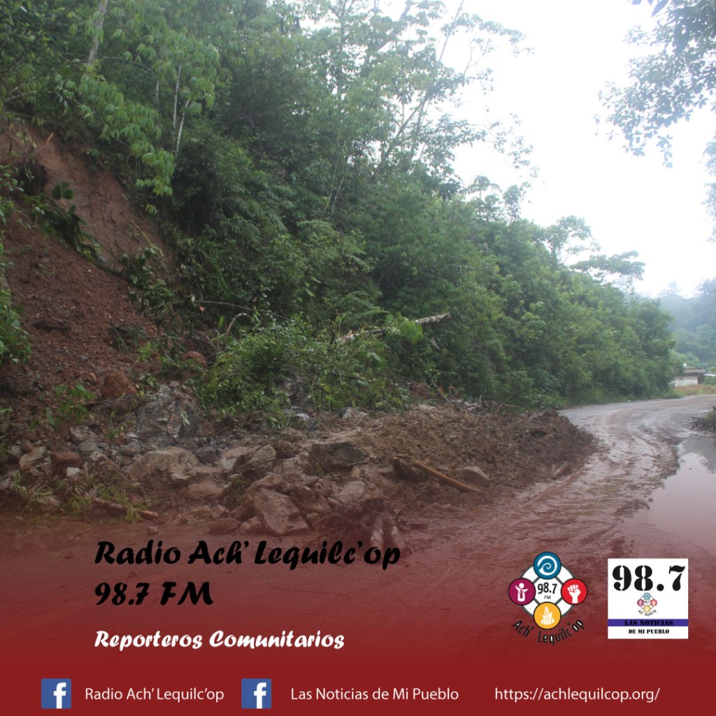 Por las fuertes lluvias que se están presenciando en estos días, están generando inundaciones, derrumbes de cerros y deslaves en las carreteras, específicamente en el tramo de Cojtomil a Guadalupe Paxilha’.