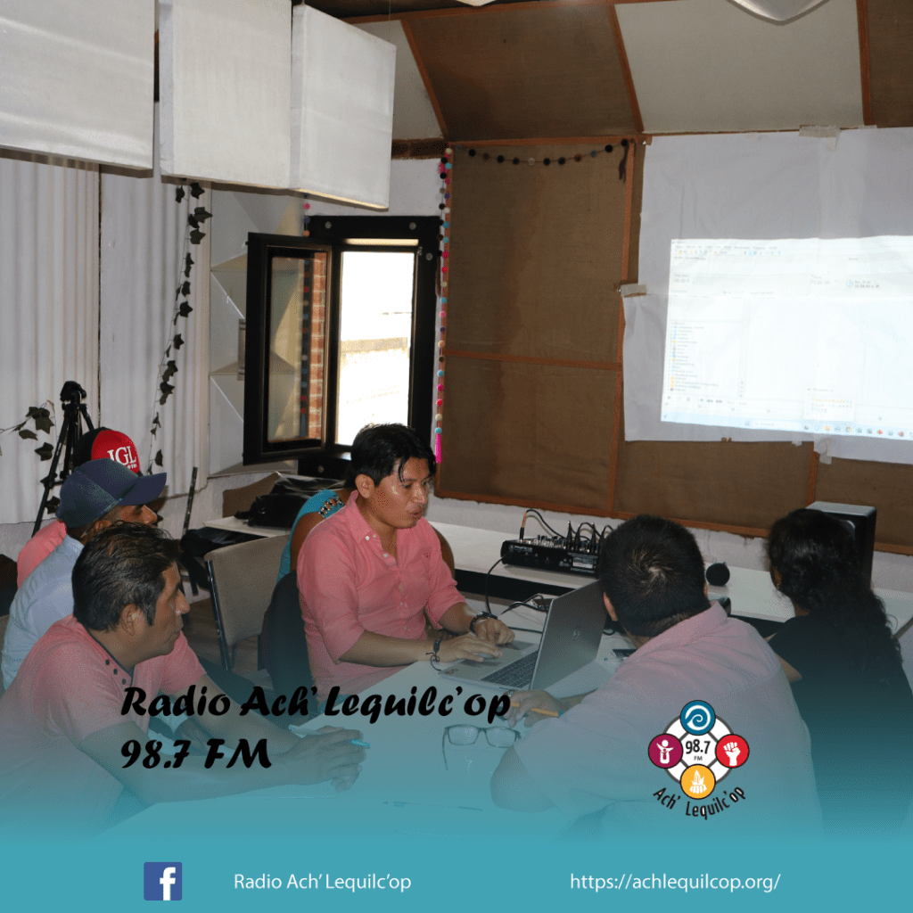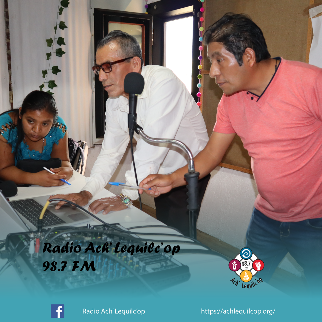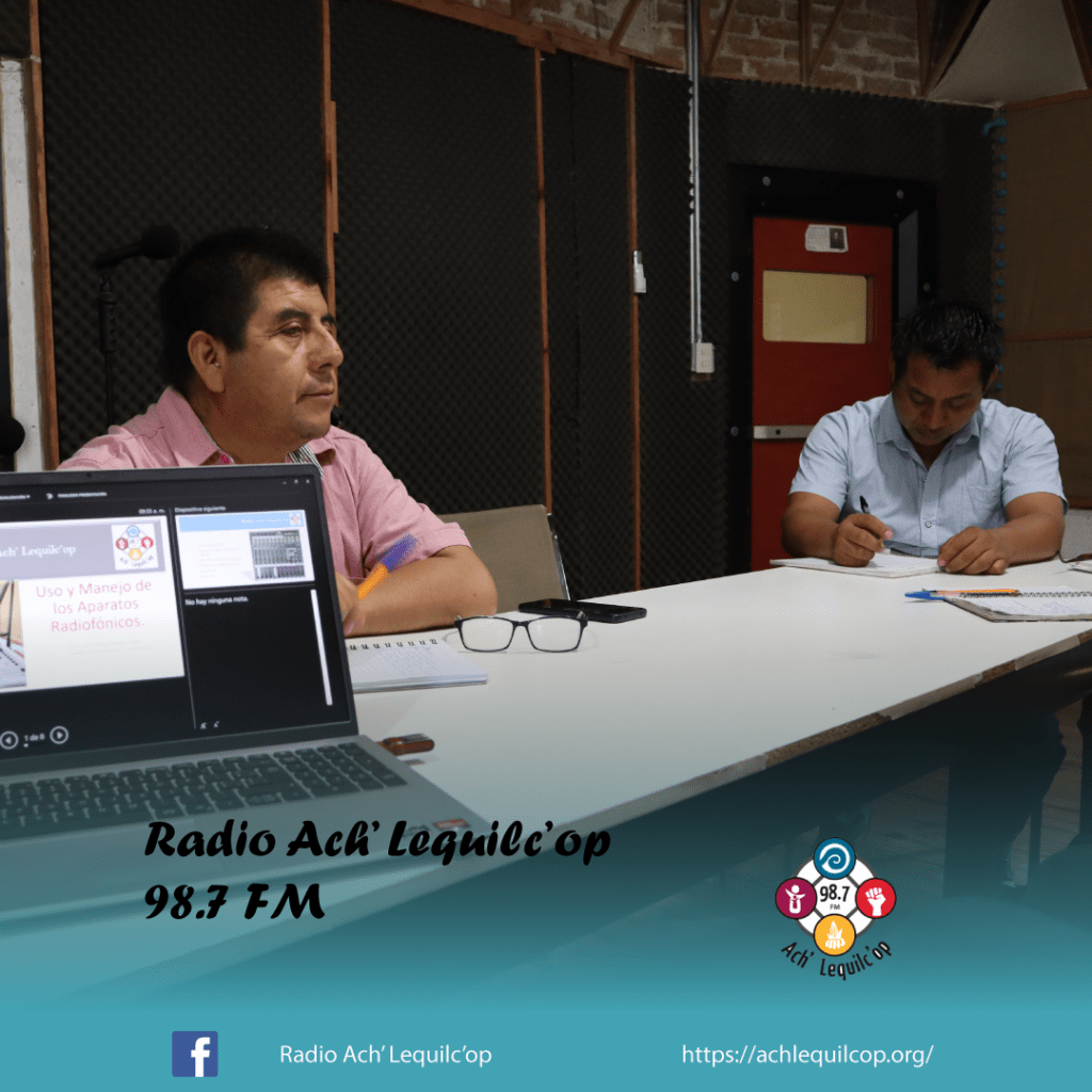 El lunes 31 de julio, nuestra Radio Comunitaria Ach’ Lequilc’op, llevo acabo un taller sobre el Uso y Manejo de los Equipos de la Radio, en donde estuvieron participando la mayoría de las personas que cuentan con un programa dentro de nuestra barra programática, así como los actores externos, maestros, grupos del AA, el equipo pastoral, reporteros voluntarios y algunas integrantes de grupos de mujeres.