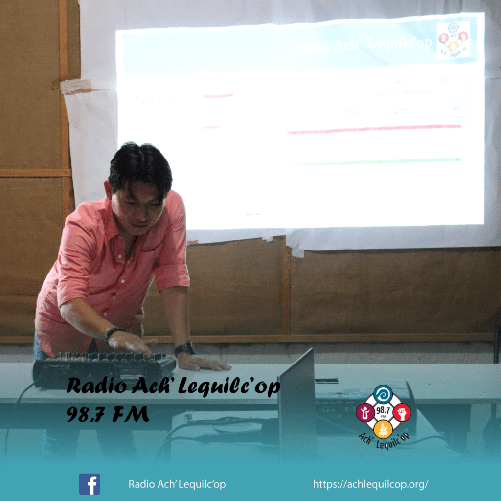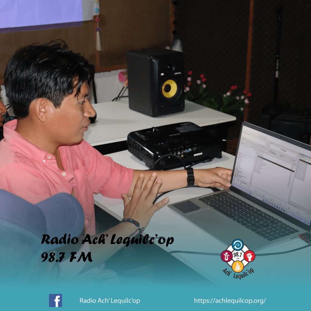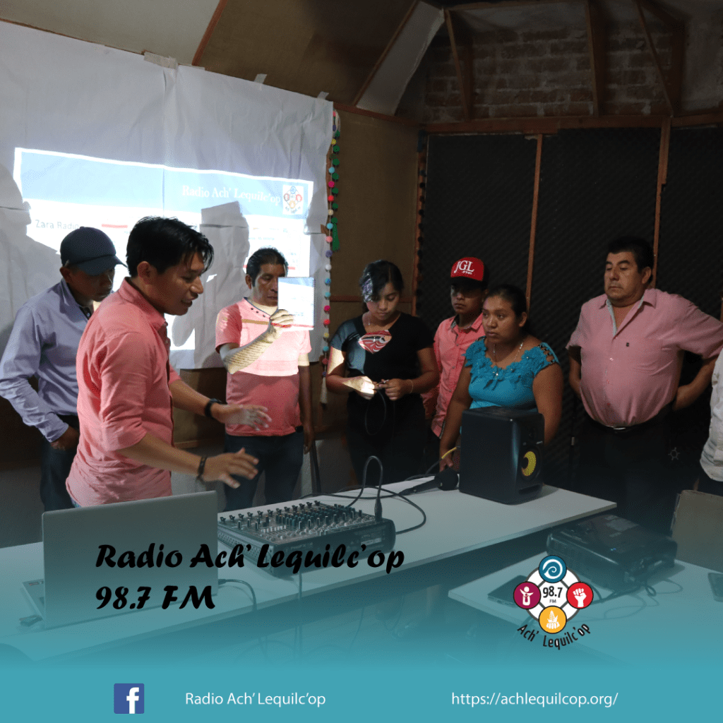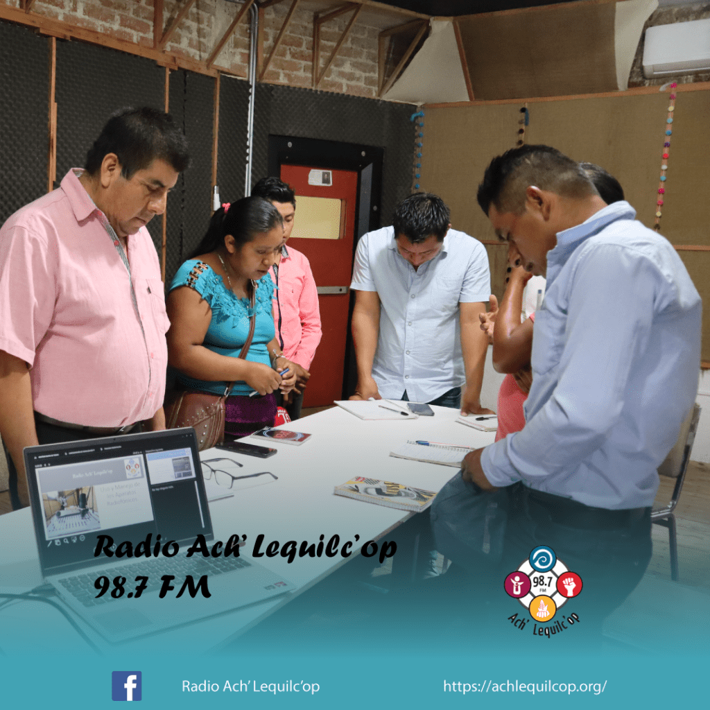 El lunes 31 de julio, nuestra Radio Comunitaria Ach’ Lequilc’op, llevo acabo un taller sobre el Uso y Manejo de los Equipos de la Radio, en donde estuvieron participando la mayoría de las personas que cuentan con un programa dentro de nuestra barra programática, así como los actores externos, maestros, grupos del AA, el equipo pastoral, reporteros voluntarios y algunas integrantes de grupos de mujeres.